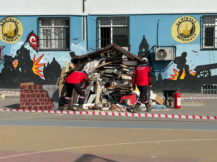 KOCAELİ (İGFA) - Afetlere karşı bilinçli bir Çayırova için çalışmalarına devam eden Çayırova Belediyesi, ilçedeki okullarda düzenlediği programlarla, öğrencilerin afet bilincini artırmaya devam ediyor. Bu bağlamda bu yıl ilçe genelindeki ortaokullarda deprem farkındalık eğitimi veren ÇAK-TİM, bu kez de Demirsaç Ortaokulu’nda düzenlenen Sivil Savunma Günü programında afet bilincini artırmaya yönelik tatbikat düzenledi. Çayırova İlçe Milli Eğitim Müdürlüğü’nün düzenlediği program kapsamında, ilk olarak öğrencilere deprem tahliye tatbikatı gerçekleştirildi.