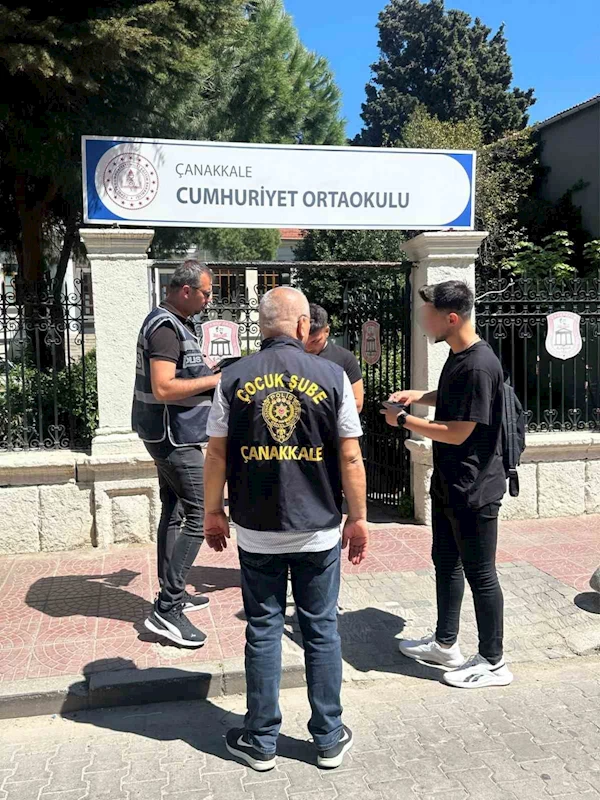Çanakkale İl Emniyet Müdürlüğü Çocuk Şube Müdürlüğü ekiplerince il merkezi ve ilçelerde 230 personel ve 80 ekiple gerçekleştirilen "Çocuk ve Gençlerin Korunmasına Yönelik Okul Çevreleri ile Servis Araçları Denetim Uygulaması"nda 159 okul çevresi, 49 park/bahçe ve mesire alanı, 10 metruk bina ve çevresi, 31 büfe\bakkal vb. iş yeri, 18 kahvehane/kıraathane, 3 oyun salonu, 17 internet salonu, 5 iddia bayi, 13 içkili umuma açık istirahat ve eğlence yeri kontrol edildi.