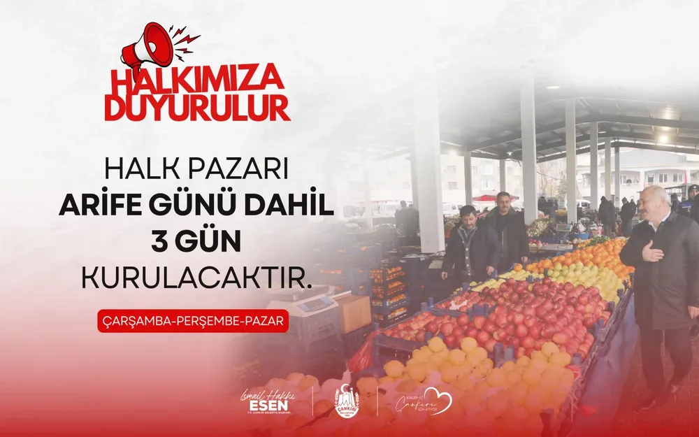 Perşembe gününe denk gelen arife gününde, Çarşamba Pazarı alanında bir kez daha pazar kurulacak. Böylece pazar esnafı ile vatandaşlar bu hafta üç gün boyunca bir araya gelme imkânı bulacak.