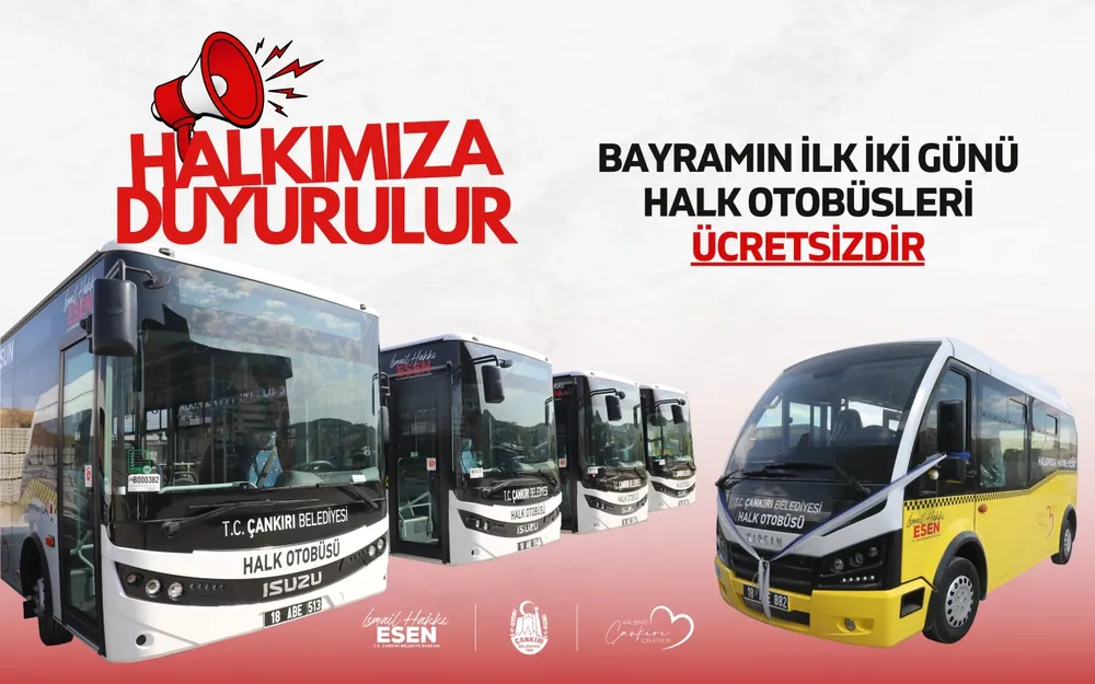 Çankırı Belediyesi, Ramazan Bayramı süresince vatandaşların ulaşımını kolaylaştırmak amacıyla geleneksel uygulamasını sürdürdü. Belediye, bayramın birinci ve ikinci gününde şehir içi halk otobüslerinin ücretsiz olarak çalışacağını duyurdu.