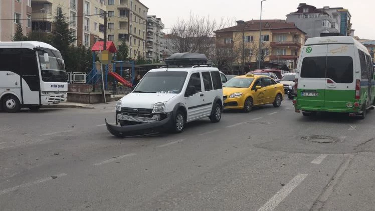 Tekirdağ Çerkezköy’de iki aracın çarpıştığı kazada, otomobillerden biri çarpmanın etkisiyle yan yattı.