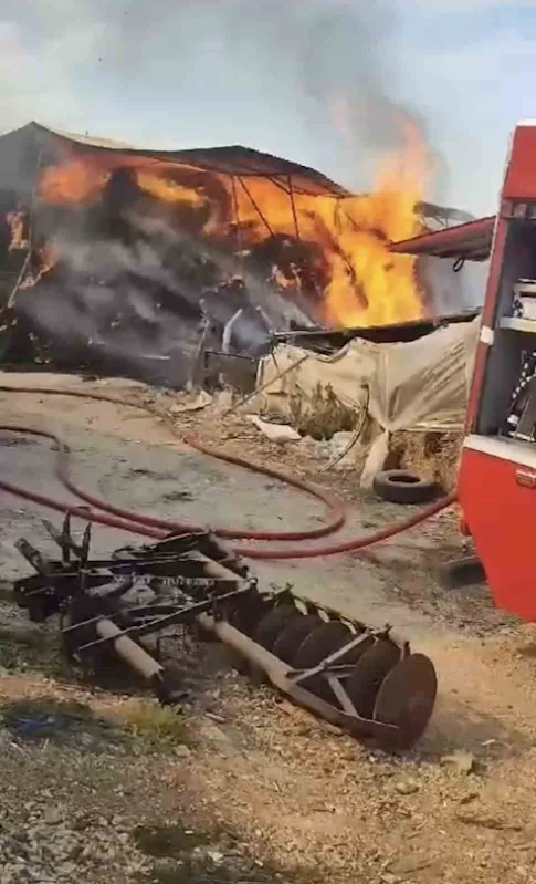 Çiftlikte bulunan yem dolu depo alev alev yandı