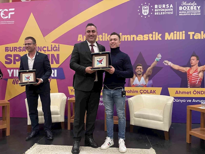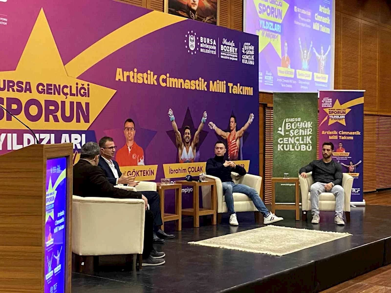 Bursa Büyükşehir Belediyesi tarafından düzenlenen ‘Bursa Gençliği Sporun Yıldızları ile Buluşuyor’ programına konuk olan Artistik Cimnastik Milli Takımı sporcuları İbrahim Çolak ve Ahmet Önder ile Artistik Cimnastik Milli Takımı Teknik Direktörü Yılmaz Göktekin, Bursalı çocuklarla ve gençlerle buluşarak deneyimlerini paylaştı.