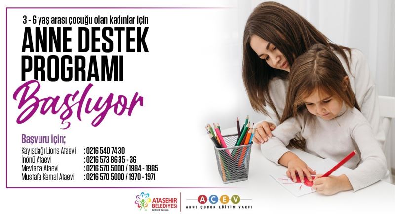 Anne olmak hazırlık gerektirir mi? Mükemmel annelik var mıdır? Eğer varsa nedir? Mutlu bir anne olabilmek ve çocukla sağlıklı iletişim kurmak için neler yapılmalı? Bu soruların yanıtlarını birlikte bulmak isteyenler için, Ataşehir Belediyesi ve AÇEV iş birliğiyle düzenlenen "Anne Destek Programı” başlıyor.