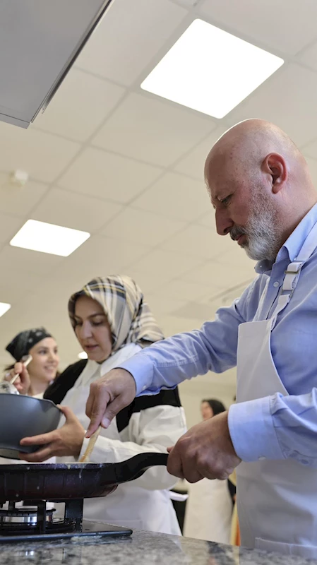 Kayseri’nin en büyük tesisi olan Kocasinan Akademi Ertuğrulgazi Tesisinde, Kocasinan Belediye Başkanı Ahmet Çolakbayrakdar’ın eşi Fatma Çolakbayrakdar, Kocasinan Belediye Meclisi’nin kadın üyeleriyle birlikte aşçılık kursiyerleriyle mutfağa girdi. Mutfakta da ustalığını konuşturan Fatma Çolakbayrakdar, Kayseri’nin saklı kalmış birçok lezzetini gün yüzüne çıkardı. Beyaz yağlama, tava katmeri, kıymalı kuru börek, kamış baklava, Kayseri tiridi, şekerpareli kayısı kavurması, un çorbası, kurşun aşı, sıkma pekmez helvası, inecik yağlaması, Kayseri halkası gibi ürünleri tek tek mutfakta pişiren Fatma Çolakbayrakdar’a daha sonra Başkan Çolakbayrakdar da eşlik etti. Şef önlüğünü kuşanan Başkan Çolakbayrakdar, mutfaktaki hüneriyle izleyenlerden tam not aldı. Hem samimiyeti hem de maharetiyle gönüllere taht kuran Başkan Çolakbayrakdar, “Kayseri’nin saklı lezzetlerini gün yüzüne çıkarıyoruz. Kadim şehrimizin mutfak kültürünü, Kocasinan Akademi ile geleceğe taşıyoruz.” dedi.