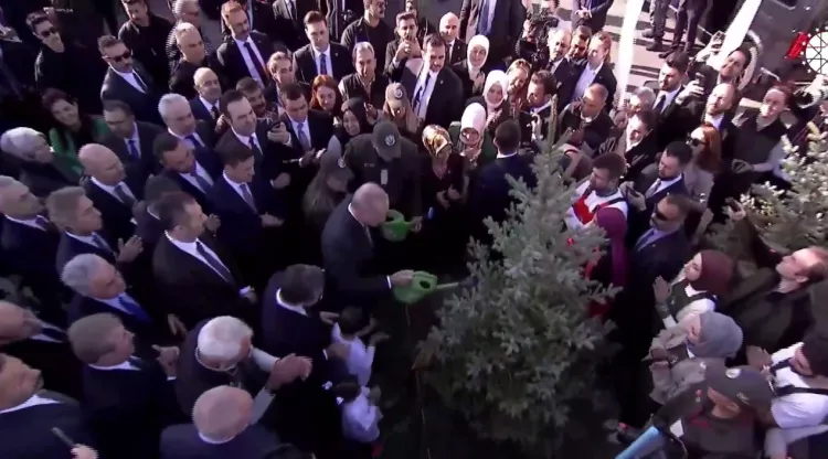 Daha sonra katılımcı protokol ile birlikte Cumhurbaşkanı Erdoğan, 11 Kasım Milli Ağaçlandırma Günü Programı kapsamında fidan dikerek can suyunu verdi.