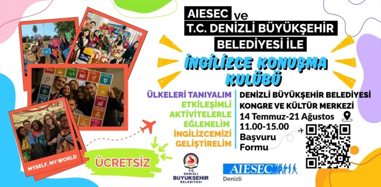 Denizli Büyükşehir Belediyesi ve AIESEC Denizli iş birliğiyle hayata geçirilen “Global Classroom” projesi kapsamında, gençlerin İngilizce konuşma becerilerini geliştirmeleri ve farklı kültürlerle tanışmaları amacıyla özel bir program başlatılıyor.