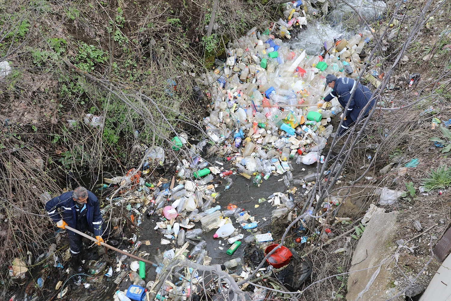 BİTLİS (İGFA) - Bu yılki temizlik çalışmalarında özellikle dere yataklarına ayrı bir önem veriliyor. Şehrin içinden geçen dere yataklarına zamanla biriken ve karların erimesiyle ortaya çıkan çöpler, ekipler tarafından özenle temizleniyor. Temizlik görevlileri, dereye inerek çevreye gelişigüzel atılan atıkları toplayarak hem çevre sağlığına katkı sunuyor hem de kötü görüntülerin önüne geçiyor.