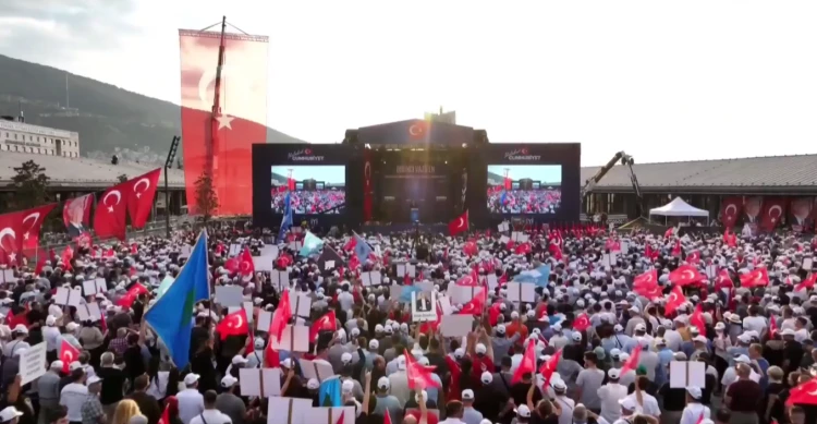 AK Parti-MHP ve DEM ortaklığı tarafından yürütülen "İkinci Çözüm Süreci"ne karşı ses yükselten İYİ Parti Genel Başkanı Müsavat Dervişoğlu, Bursa mitinginde adalet, eşitlik ve özgürlük değerlerini savunarak Türk milletinin birleştirilmesi gerektiğini savundu.