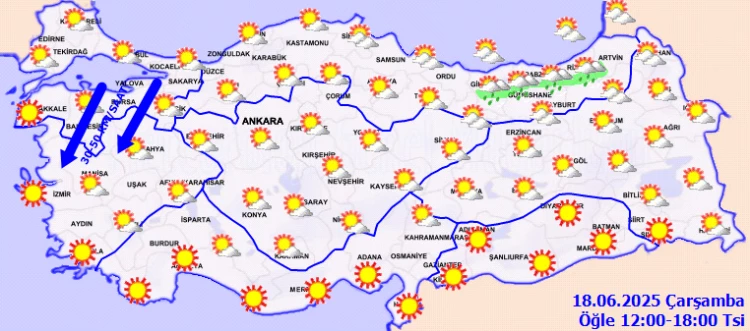 Giresun, Trabzon, Rize ve Artvin'in iç kesimlerinin yerel sağanak yağışlı, diğer yerlerin az bulutlu ve açık geçeceği tahmin ediliyor. Rüzgarın; Marmara’nın batısı, Kuzey Ege, Doğu Anadolu'nun batısında, kuzeyli yönlerden kuvvetli olarak (30-50 km/saat) esmesi bekleniyor.