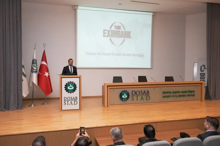 Bursa'da Demirtaş Organize Sanayi Bölgesi Sanayici ve İş İnsanları Derneği (DOSABSİAD) tarafından düzenlenen “İhracatın Finansmanında Türk Eximbank’ın Kredi ve Sigorta Destekleri” başlıklı bilgilendirme toplantısı, üyelerin yoğun katılımıyla DOSABSİAD Konferans Salonunda gerçekleştirildi.