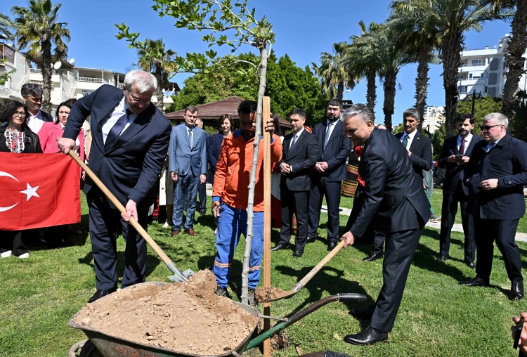 Antalya’da Muratpaşa Belediye Başkanı Ümit Uysal ve Ukrayna Dışişleri Bakanı AndriySibiha, Ukrayna ve Türkiye arasındaki dostluğun simgesi olarak Ukrayna Kültür Parkı’nda birlikte çınar ağacı dikti.
