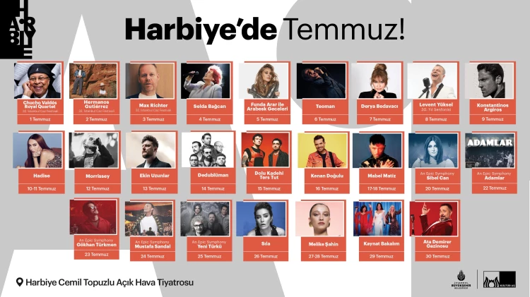 İSTANBUL (İGFA) - İstanbul Büyükşehir Belediyesi iştiraklerinden Kültür AŞ bünyesindeki Harbiye Cemil Topuzlu Açık Hava Tiyatrosu, 2025 yaz sezonunda dopdolu bir programla sanatseverleri karşılamaya devam ediyor. Temmuz ayı boyunca, Türk müziğinin önde gelen isimlerinin yanı sıra dünya çapında tanınan sanatçılar Harbiye sahnesinde olacak.