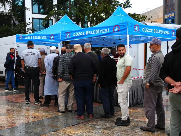 Düzce'de 19 Eylül Gaziler Günü dolayısıyla düzenlenen etkinlikler kapsamında Düzce Belediyesi de vatandaşlara lokma ikramında bulundu.
