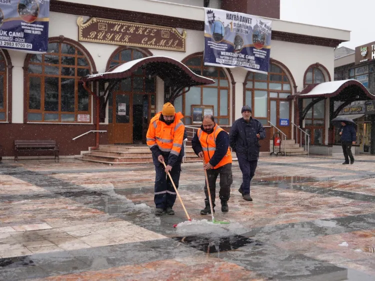 Sefer DEMİR / DÜZCE (İGFA) - Ulaşımda aksamaların yaşanmaması ve sosyal hayatın olumsuz etkilenmemesi amacıyla çalışmalarını yürüten belediye ekipleri, şehir merkezi başta olmak üzere birçok noktada görev yapıyor.