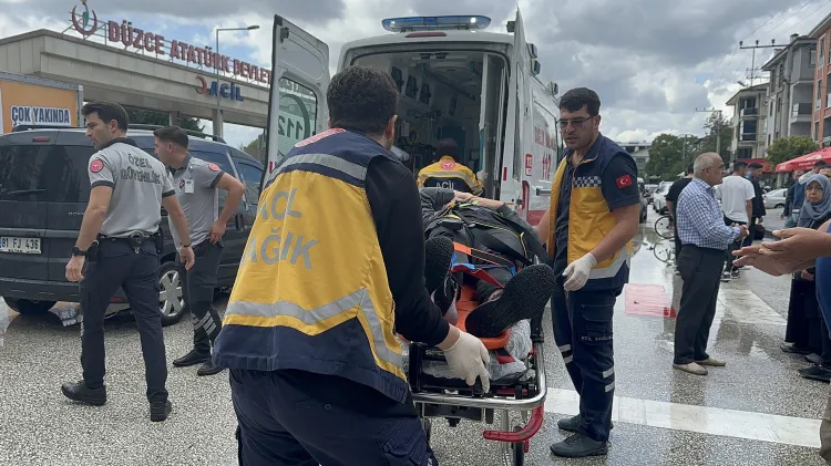 Düzce Atatürk Devlet Hastanesi önünde Mustafa A. yönetimindeki otomobil, Başar A.'ın kullandığı motosiklete çarptı. Motosiklet sürücüsü yaralı olarak hastaneye kaldırıldı. Kaza anı güvenlik kamerasına yansıdı ve polis soruşturma başlattı.