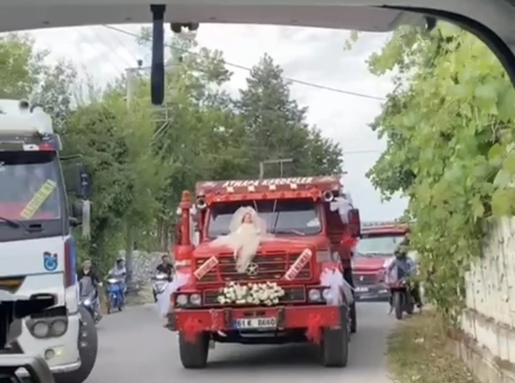 Düzce’de 26 yaşındaki hafriyat kamyonu sürücüsü Yusuf Kazancı, kamyonunu “Evleniyoruz, mutluyuz” yazısıyla süsleyerek gelin arabasına çevirdi. 23 yaşındaki Nermin ile evlenen Kazancı’nın şehir turu sosyal medyada büyük ilgi gördü.