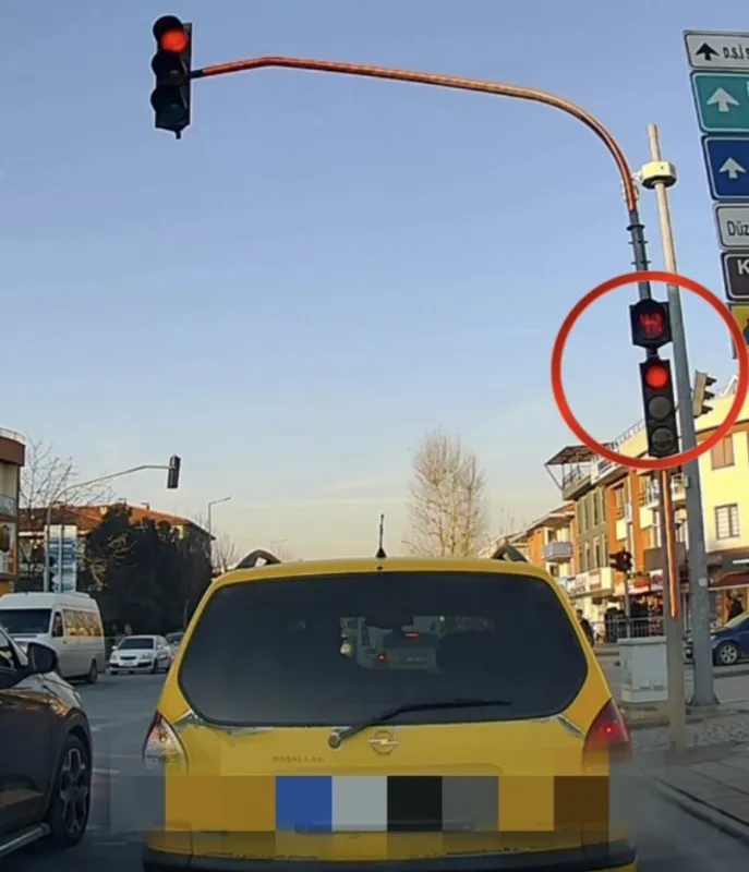 Düzce'de kent merkezinde kırmızı ışıkta geçen bir ticari taksi, diğer sürücülerin tepkisini çekti.