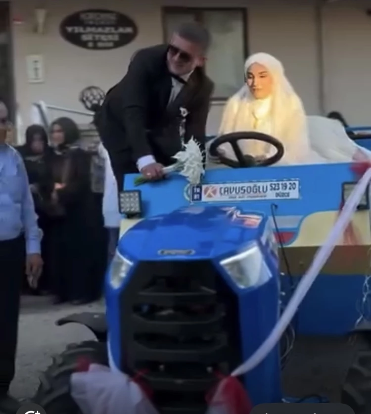 Düzce'nin Aziziye Mahallesi'nde Turgay ve Şevval çiftinin düğününde patpat tarım aracı gelin arabası oldu. Gelin tarafından kullanılan patpatla yapılan konvoy, renkli görüntülerle düğün salonuna geldi ve vatandaşlar tarafından kaydedildi.