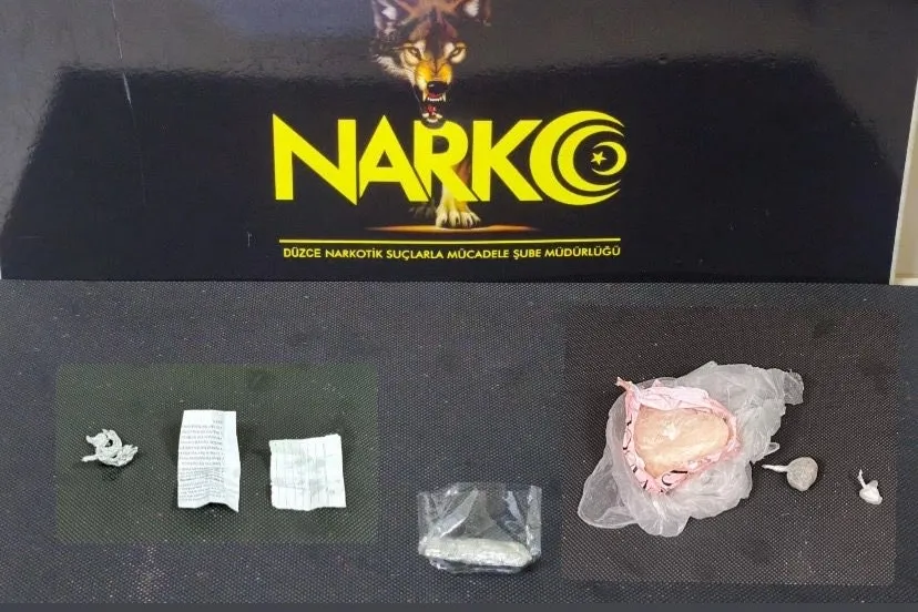 Düzce'de düzenlenen narkotik operasyonunda, 40 gram metamfetamin ve 1 gram sentetik kannabinoid ele geçirildi. R.Ş. ve R.D. adlı şüpheliler uyuşturucu ticareti suçlamasıyla tutuklandı.