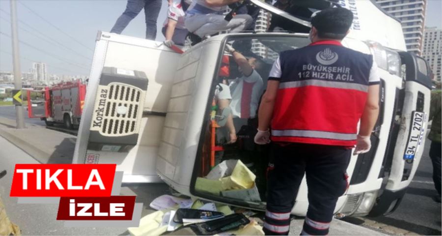 E-5 Esenyurt Haramidere mevkisinde gıda yüklü bir kamyonet, iddiaya göre fıskiye suları nedeniyle kayganlaşan yolda kontrolden çıkarak devrildi. Kamyonette sıkışan bir kişi ön cam kırılarak kurtarıldı.