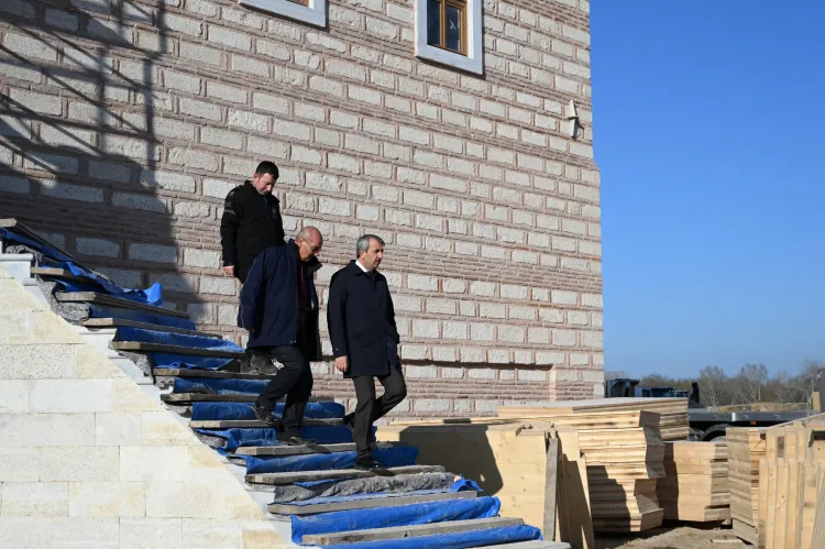 Edirne Valisi Yunus Sezer, restorasyon çalışmalarının sürdüğü alanda incelemelerde bulunarak yetkililerden bilgi aldı.