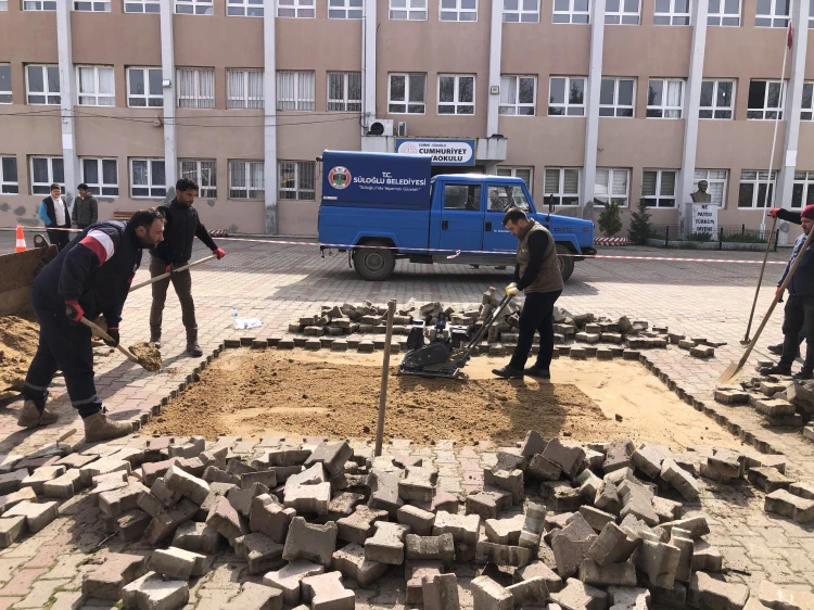 Erdoğan DEMİR / EDİRNE (İGFA) - Edirne'nin Süloğlu ilçesinde yerel belediye, Süloğlu Ortaokulu’nun bahçe zemini parke taşla düzenleyip, basketbol ve voleybol sahalarının çizgi çalışmalarını tamamladı.