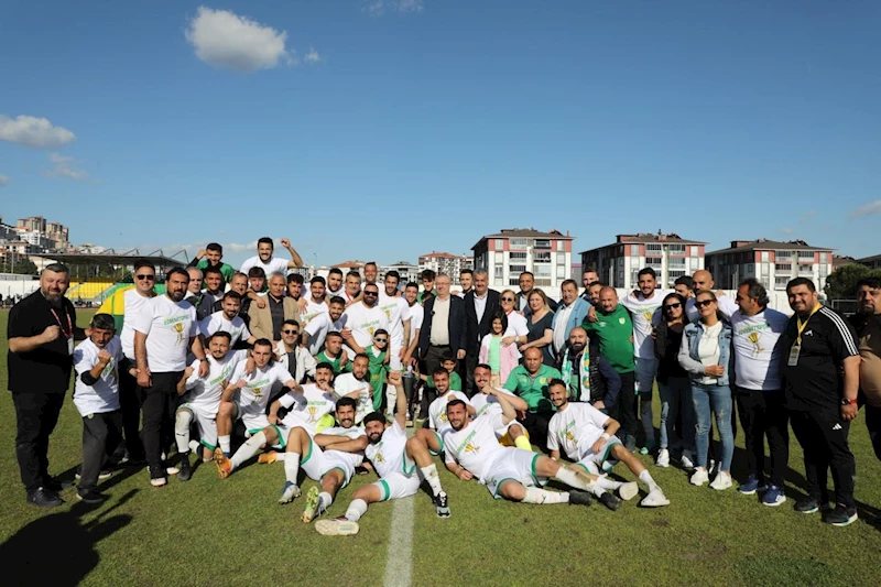 Karşılaşmanın bitiş düdüğü ile birlikte yeşil sarılı ekip saha içerisinde sevinç yumağı oluşturdu. Futbolcular ve taraftarlar şampiyonluğu doyasıya kutlarken Kaymakam Odabaş ve Belediye Başkanı Mehmet Ertaş’ta sporcuların sevincine ortak oldu.