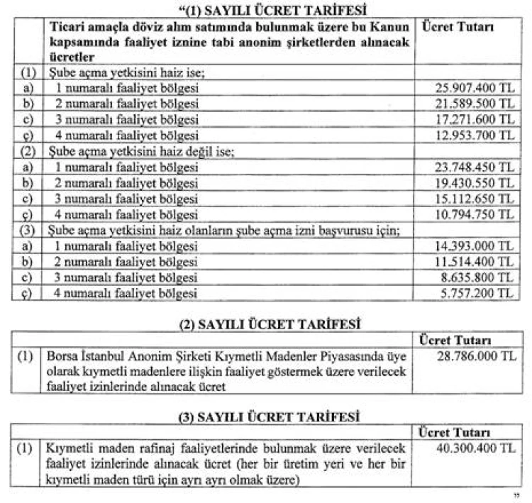 Döviz, kıymetli maden ve rafinaj faaliyetleri için Hazine ve Maliye Bakanlığı’ndan izin zorunlu; ücret tarifeleri belirlendi.