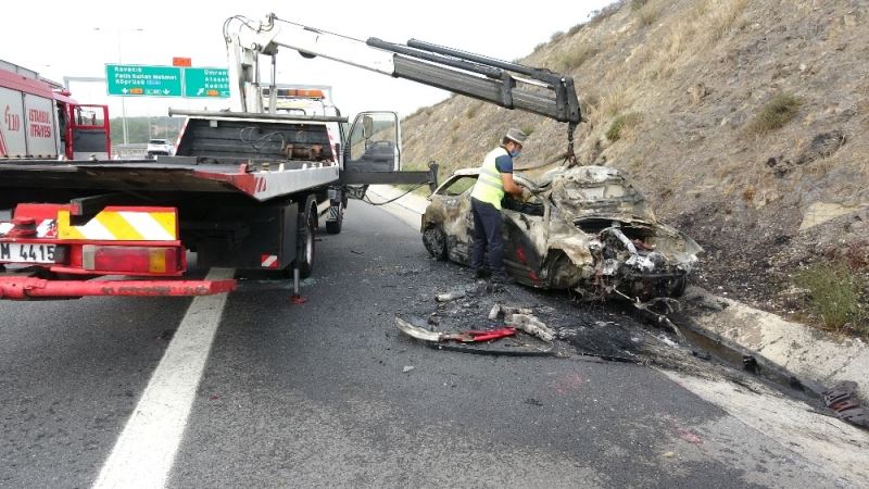 Kuzey Marmara Otoyolu’nda bir araç, emniyet şeridinde duran araca arkadan çarptı. Çarpmanın etkisiyle takla atan araç, kısa süre sonra alev aldı. Kazada yaralanan 1 kişi hastaneye kaldırıldı.
