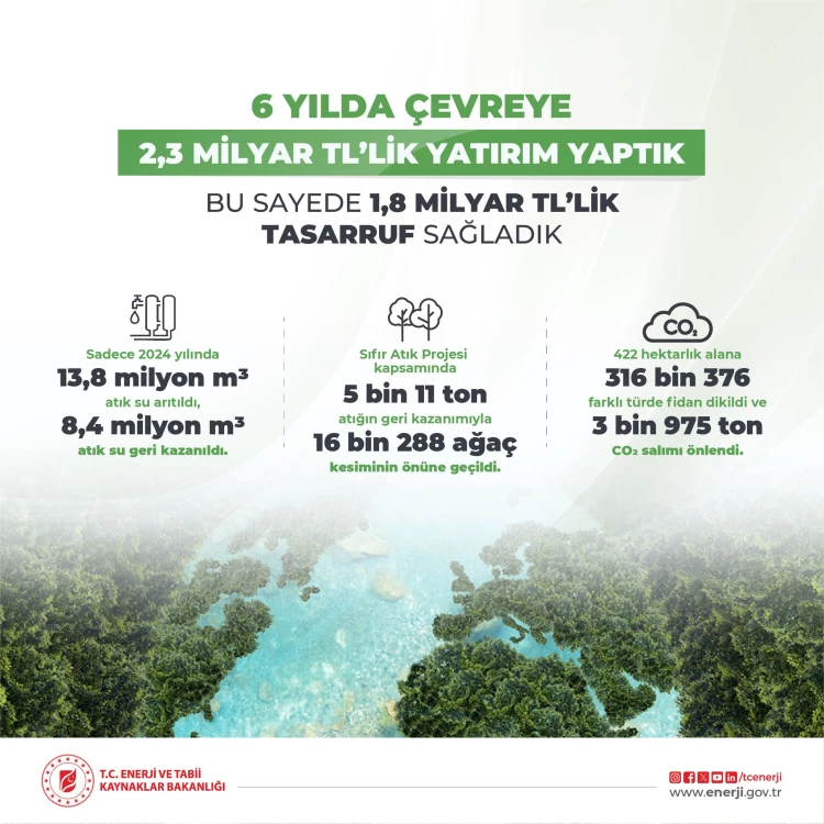 Sıfır Atık Projesi kapsamında ise 2024’te 5 bin ton atık geri kazanıldı, 10 bin ton karbondioksit azaltımıyla 16 bin 288 ağaç kurtarıldı ve 24 bin metreküplük depolama alanı kazanıldı.