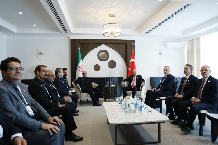 ANKARA (İGFA) - Cumhurbaşkanı Recep Tayyip Erdoğan, Ekonomik İşbirliği Teşkilatı Zirvesi için bulunduğu Azerbaycan’da, İran Cumhurbaşkanı Mesud Pezeşkiyan ile önemli bir görüşme gerçekleştirdi.