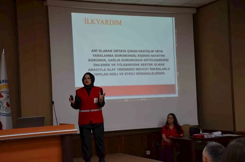 Erenler Belediyesi Afet İşleri Müdürlüğü, belediye personeline yönelik İlk Yardım Farkındalık Eğitimlerine devam ediyor. Periyodik olarak devam eden eğitimler hakkında bilgi veren Erenler Belediyesi Afet İşleri Müdürü İsmet Akkoyun, “Bugün gerçekleşen eğitim programımıza Kızılay Sakarya Şube Başkanı Cevdet Koç ve eğitimci arkadaşlarımız konuk oldu. Belediye personelimize yönelik eğitimlerimiz sürecek” diye konuştu.