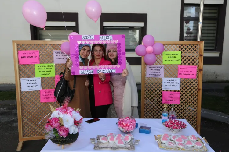 Etkinlik kapsamında kadınlara erken teşhisin önemi, mamografi taramalarının nasıl yapıldığı ve sağlıklı yaşam alışkanlıklarının kansere karşı koruyucu etkileri anlatıldı.