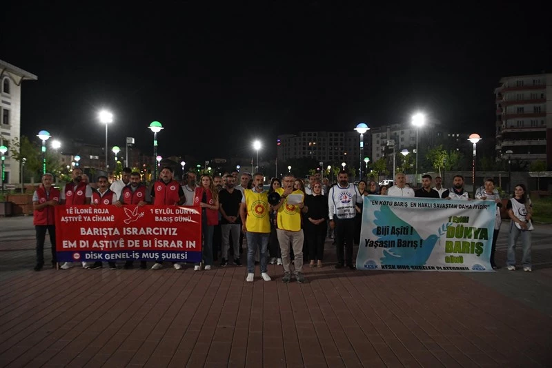 Muş Belediyesi Eşbaşkanları Sırrı Söylemez ve Tuba Sayılğan, 1 Eylül Dünya Barış Günü nedeniyle DEM Parti Muş İl Başkanlığı ve DİSK ile KESK’in düzenlediği programlara katıldı.