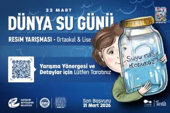 Eskişehir Büyükşehir Belediyesi Su ve Kanalizasyon İdaresi Genel Müdürlüğü (ESKİ), su kaynaklarının korunmasına yönelik farkındalık çalışmalarını sürdürüyor. Kurum, 22 Mart Dünya Su Günü etkinlikleri kapsamında, Kirli Önlük Sanat Evi iş birliğiyle ortaokul ve lise öğrencilerine yönelik "Suyu Nasıl Koruruz?" temalı bir resim yarışması düzenliyor.