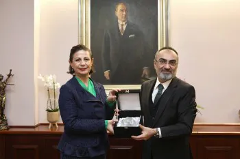 Türkiye Belediyeler Birliği Genel Sekreteri Suat Yıldız, Genel Sekreter Yardımcısı Dr. Şengül Altan Arslan, Özel Kalem Müdürü Nurdan Türeci Akova ve Basın Yayın Müdürü Nida Yılmaz Eskişehir’e gelerek Avrupa Yönetişim Mükemmelliği Markası (ELoGE) ödülünü Başkan Ayşe Ünlüce’ye makamında takdim etti.