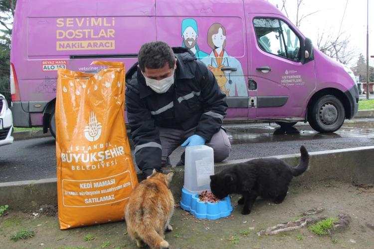 Soğuk hava koşulları nedeniyle sahipsiz sokak hayvanlarının beslenmesi için de çalışmalar devam ediyor. İBB Veteriner Hizmetleri Müdürlüğü ekipleri, İstanbul’un ücra noktalarında yiyecek bulmakta zorlanan sokak hayvanları için haftada 520 noktada günlük 2 ton besleyici kuru mama dağıtımı yapıyor.