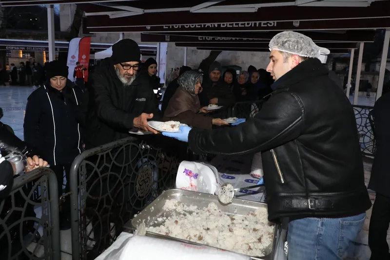 Bu mübarek gecede birlik ve beraberliği pekiştirmek amacıyla, akşam namazından sonra Eyüpsultan Meydanı’nda belediye tarafından kurulan ikram alanında vatandaşlara etli pilav dağıtıldı.