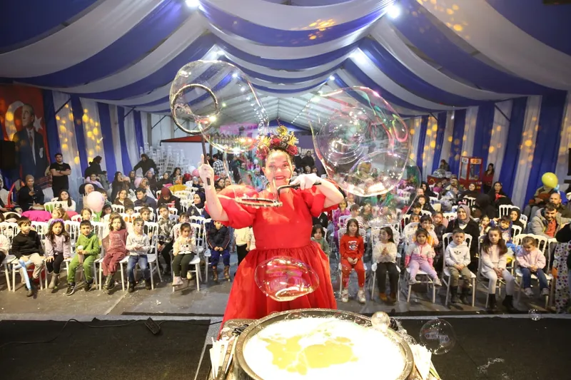 Oruçlarını açan çocuklar, Hacivat-Karagöz, sihirbazlık, balon show ve kukla gösterileri gibi etkinliklerle eğlenceli vakit geçiriyor. Bu etkinlikler sırasında çocuklara pamuk şeker ve patlamış mısır ikram ediliyor.