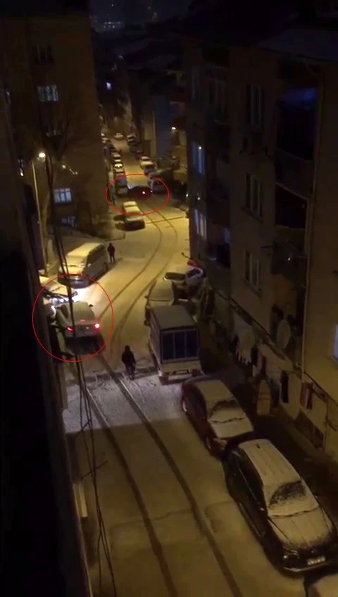 Meteoroloji Genel Müdürlüğü’nün uyarılarının ardından İstanbul’da dün akşam saatlerinde başlayan kar yağışı kısa süreli etkili oldu. Eyüpsultan’da başlayan kar yağışı yolları ve araçların üzerini beyaza bürüdü. Bazı araçlar ise karda ilerlemekte zorluk yaşadı. Ara sokakta kar nedeniyle kaymaya başlayan bir otomobil ise ilk önce bir otomobile çarptı. Çalışır durumda olan otomobil ise çarpmanın etkisiyle kaymaya başladı. Bir süre kayan otomobil daha sonra park halindeki bir otomobile çarparak durabildi. O anlar bir vatandaş tarafından cep telefonu kamerasına yansıdı.