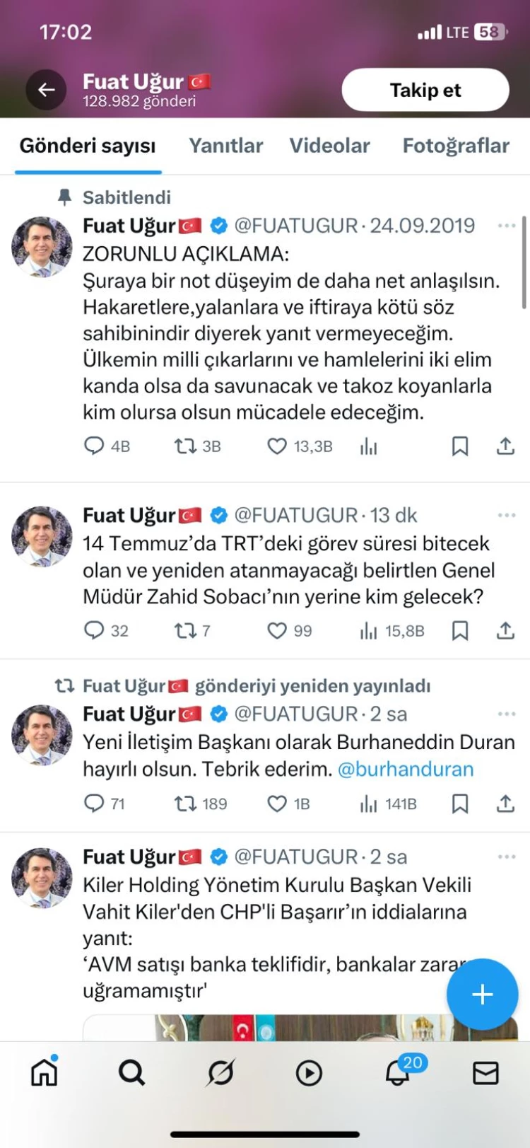 ANKARA (İGFA) - Gazeteci Fuat Uğur, sosyal medya hesabı üzerinden yaptığı paylaşımda, Dışişleri Bakan Yardımcısı olan Burhanettin Duran’ın 7 yıldır Cumhurbaşkanlığı İletişim Başkanı olarak görevde bulunan Prof. Dr. Fahrettin Altun'un yerine atandığını iddia etti.