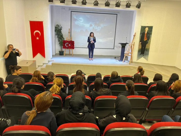 Etkinlik kapsamında öğrencilerle bir söyleşi de gerçekleştiren Funda Kurt, staj ve mezuniyet sonrası iş hayatında karşılaşabilecekleri zorluklar ile iş yeri açmak için yapılması gerekenleri öğrencilerle paylaştı. Söyleşi, soru-cevap formatında ilerleyerek gençlerin mesleki farkındalıklarını artırdı.