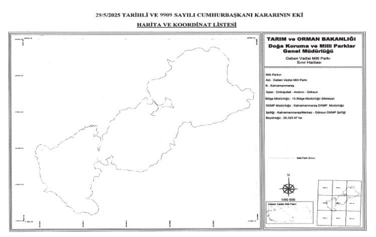 Kahramanmaraş’taki Geben Vadisi, Cumhurbaşkanı Kararı ile milli park statüsüne kavuştu. Resmi Gazete’de yayımlanan kararla, bölgenin doğal zenginliklerini ve biyolojik çeşitliliğini koruma altına alındı.