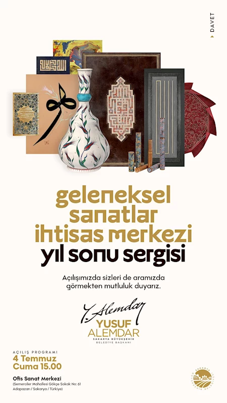 Sakarya Büyükşehir Belediyesi Geleneksel Sanatlar İhtisas Merkezi yıl sonu sergisinin açılışı 4 Temmuz Cuma günü saat 15.00’da gerçekleştirilecek.