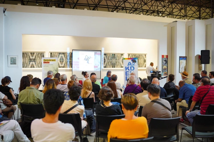 Prof. Dr. Sevda Alankuş’un kolaylaştırıcılığında ilerleyen söyleşide, katılımcılar da söz alarak sanatın bir özgürlük alanı ve muhalefet biçimi olarak nasıl bir rol üstlendiğini tartıştı. Alankuş, sanatın hiçbir zaman sadece yaratıcılıktan, estetikten, güzellikten ibaret olmadığını, ülkedeki anti demokratik gelişmelerin bedelini ödeyen gruplardan birinin de sanatçılar olduğunu belirtti. “Demokraside ben de varım” diyen gençlerin katılımıyla interaktif bir şekilde yürütülen etkinlik, hem içerik hem katılım açısından zengin bir tartışma ortamı sundu. Katılımcılar, sanat aracılığıyla demokrasinin yeniden düşünülmesi gerektiği yönünde ortak bir görüşte buluştu.
