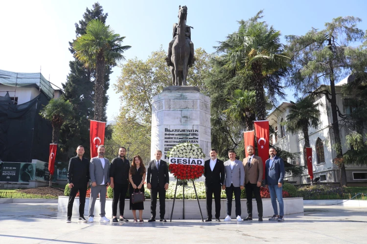 BURSA (İGFA) - 1991 yılında Bursalı genç sanayici ve iş insanlarının bir araya gelmesiyle kurulan GESİAD, 34. yılını kutluyor. GESİAD Başkanı Tolga Papatya ve Yönetim Kurulu Üyeleri, kuruluşlarının 34. yılı dolayısıyla Atatürk Heykeli’ne çelenk bıraktı.