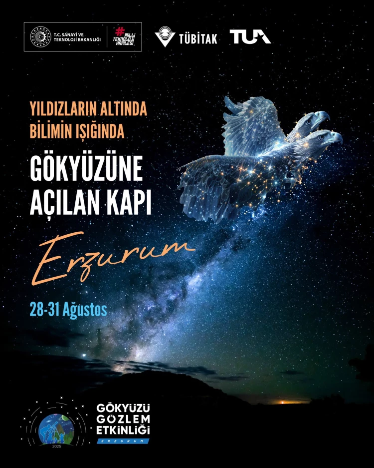 TÜBİTAK, bu etkinlikle gökyüzüne ilgi duyan herkesi Erzurum’da unutulmaz bir bilim şölenine davet ediyor.