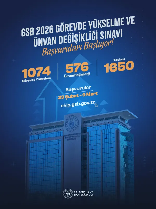 Gençlik ve Spor Bakanı Dr. Osman Aşkın Bak, bakanlığın merkez ve taşra teşkilatında görev yapan personel için “Görevde Yükselme ve Ünvan Değişikliği Sınavı” başvurularının başladığını duyurdu.
