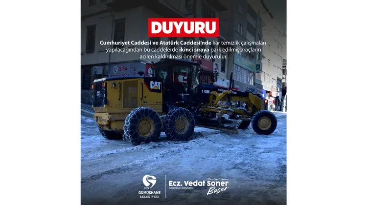 Gümüşhane Belediyesi, bir duyuru yayımladı. Duyuru metni, belediyenin resmi kanalları aracılığıyla paylaşıldı.